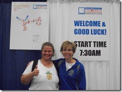 After the packet pick up section of the expo, there was a wall of maps and general race info – so . . . . we posed for a photo (of course, would you expect ANYTHING else from this blog? ha!)